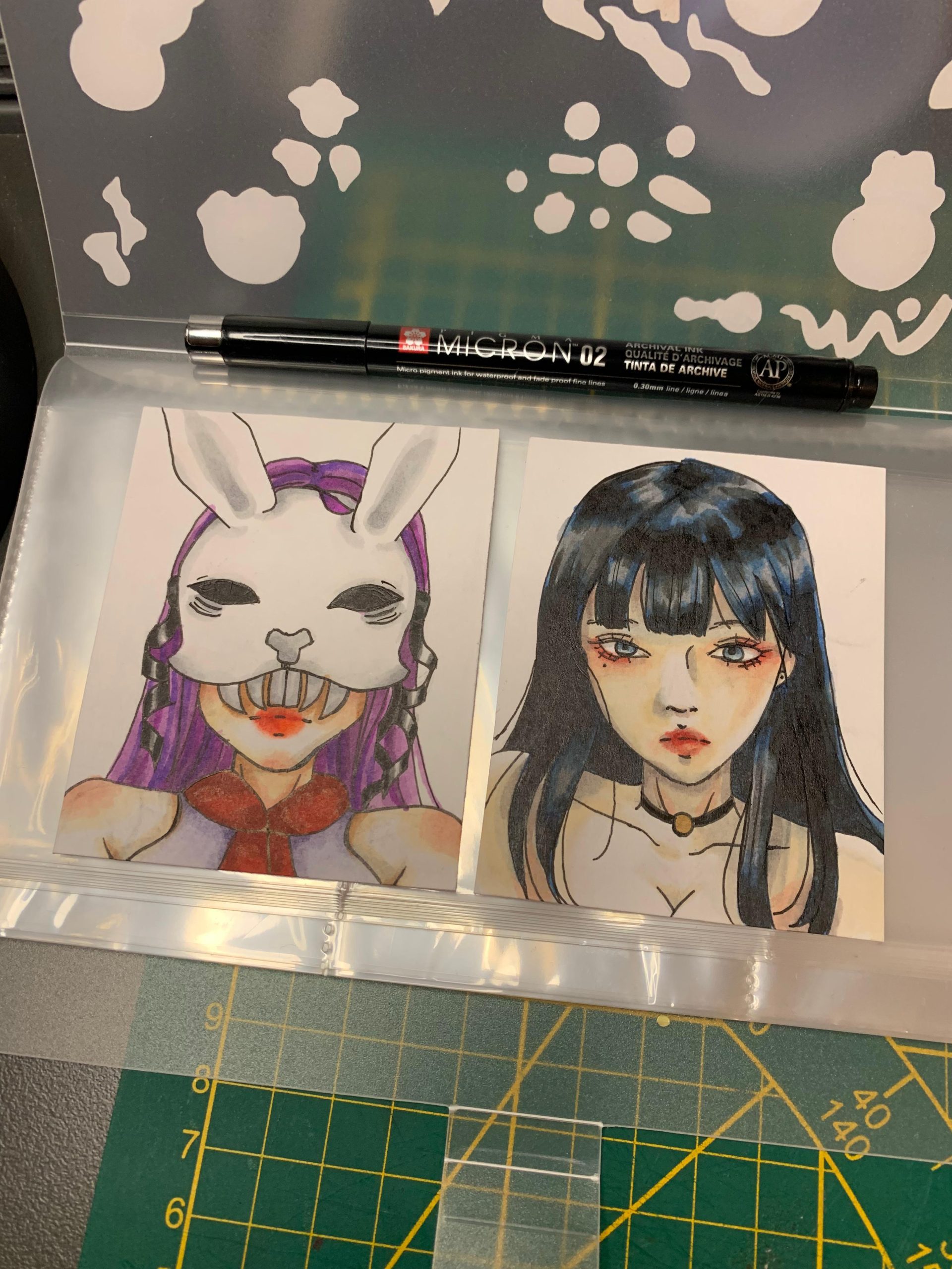 In the picture, you can see that I cut out small pieces of paper and drew my original characters onto them. This makes it feel like I have my own little collectible cards.